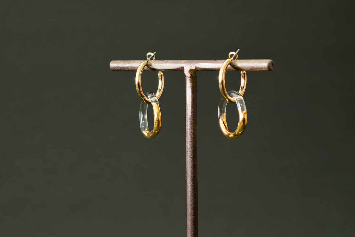 いびつな円モチーフのガラスに金彩をほどこしたピアス/イヤリングです。ガラスモチーフを取り外しできます。